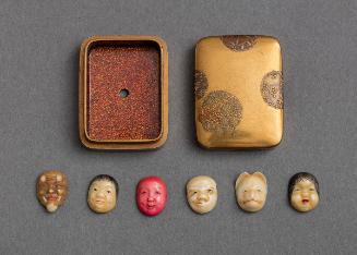 The unusual form of this elegant small box is indicative of the skill and inventiveness of Edo period lacquer designers. The double peach denotes wishes for happiness in marriage.