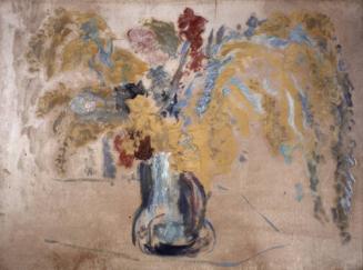 Label TextBonnard was a member of the group known as the Nabis. Along with Edouard Vuillard and Ker-Xavier Roussel, these younger artists embraced the example afforded by their ringleader, Paul Gauguin, who wielded vivid hues applied in flat planes of color with strong contouring lines, freed from normative conventions of description. By the time that Bonnard executed this tapestry of color, he had fully assimilated the lessons of Impressionism, with its adaptation of high-keyed colors and a non-hierarchical flattening of space derived from Japanese woodblock prints. However, unlike the Impressionists, Bonnard’s art was invested in experience as colored by recollection, rather than the instantaneity of direct perception. This landscape is not a record of a specific location, but a composite of several elements of parks and gardens in Le Cannet, the Riviera town where he had lived since the 1920s. Bonnard’s lack of concern with spatial coherence makes it difficult to locate the “small bridge” specified by the title, though it could be articulated by the curved forms outlined in black at the composition’s lower right corner. Thinly painted in jewel-like tones, as if using oil to accomplish the translucency of watercolor, the image has the shimmering ambiguity of a dream.