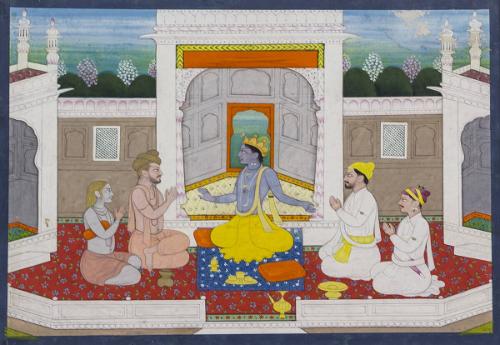 Krishna in Animated Discussion with Ascetics and Noblemen on a Palace Terrace